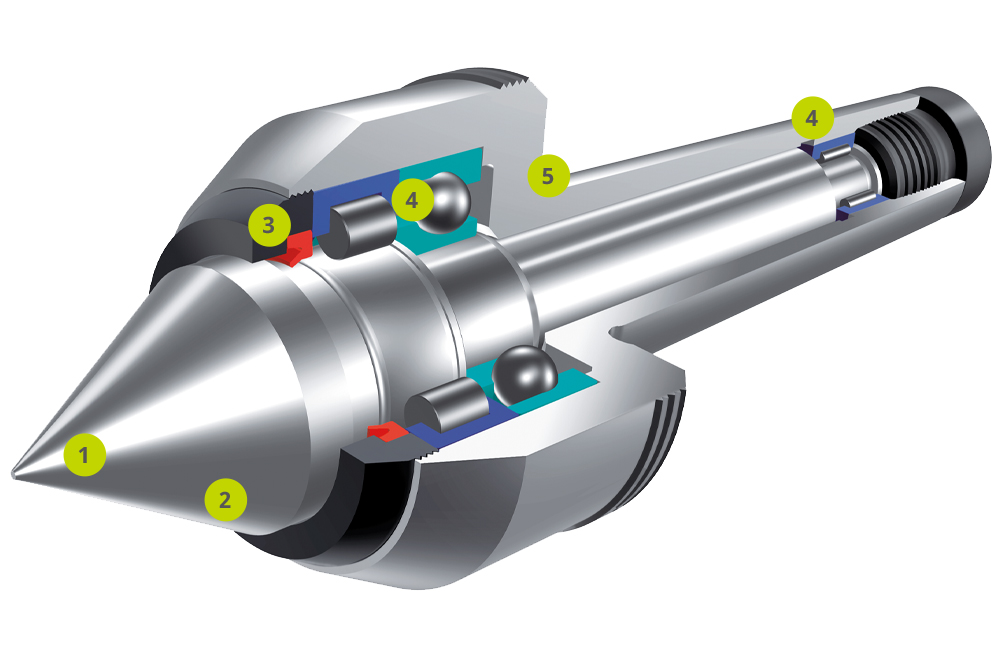 This high performance live centre was developed for use with advanced turning and grinding technology. With a short design, the bearings and pitch of the bearings are matched so that this high performance centre withstands vibrations in all machining situations.