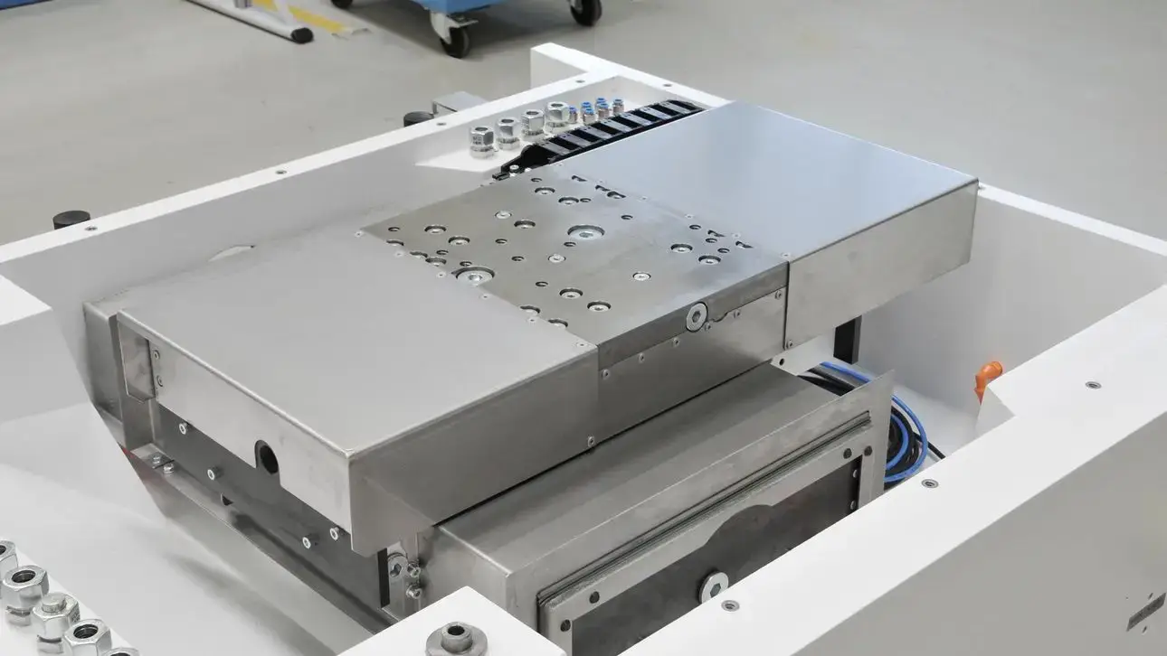 - Cross slide with wheelhead for external grinding with grinding wheel right and a prepared interface for the internal grinding unit (optional)
