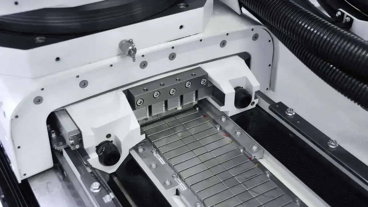The machine is ideal for the manufacture of drawing dies, especially in the packaging industry, where tungsten carbide and ceramics are primarily processed. The machine has a host of sophisticated technical features such as the revolutionary StuderGuide® guideway system, high-precision axis drives with linear motors, a fully automatic B-axis with direct drive, etc.