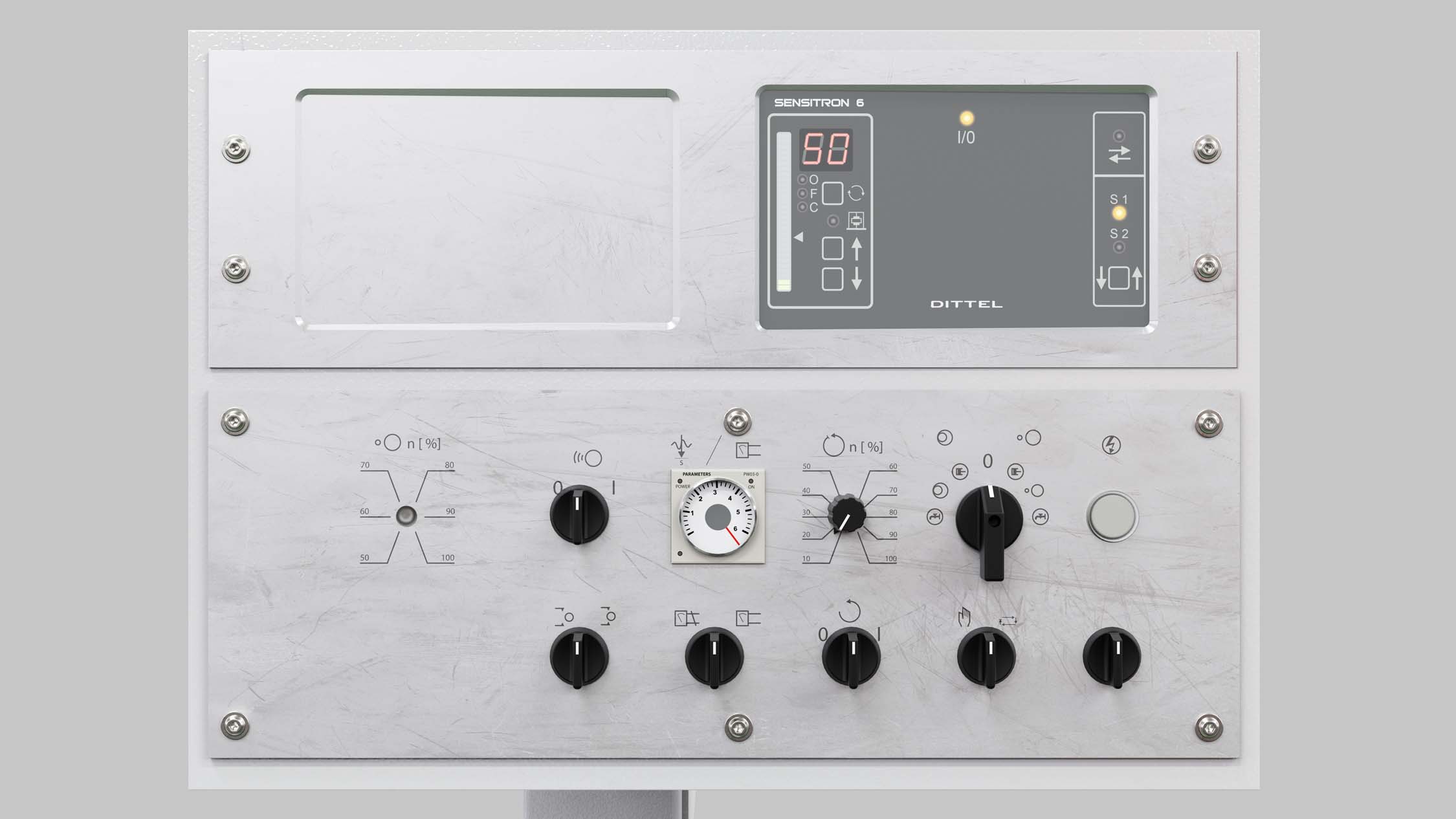- Electrical enclosure permanently connected to the machine. Can be expanded for measuring systems and Sensitron